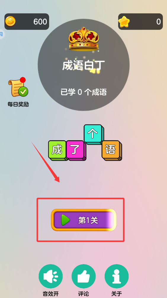 2、點擊紅色框框點第一關就可以玩了。