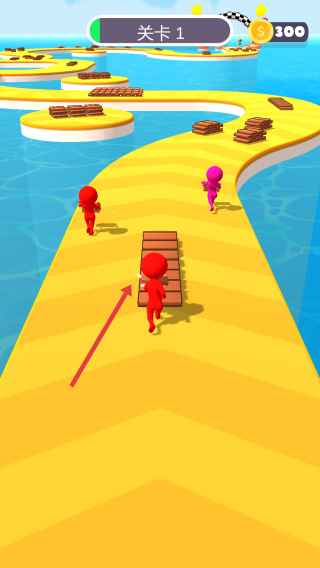 1、搭建橋梁快人一步:通過收集磚塊、木板或甲板并堆成一堆,然后建造橋梁走捷徑,這種方式能讓你比其他競爭對手跑得更快,從而贏得比賽,考驗策略與操作的結合。