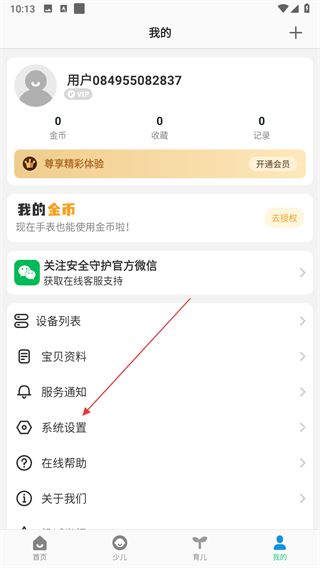 1、打開安全守護(hù)APP,進(jìn)入我的頁面,點擊系統(tǒng)設(shè)置。
