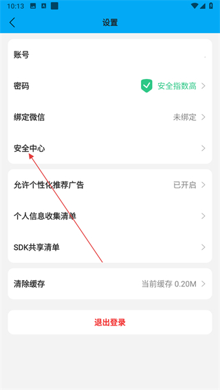 2、進(jìn)入我的設(shè)置頁面,找到并點擊安全中心選項。