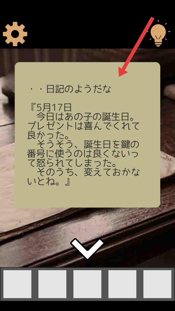 3、點(diǎn)擊桌子上的日記進(jìn)行查看,提取到【5月17日】日期的重要線索,該信息或用于破解密碼類機(jī)關(guān)。