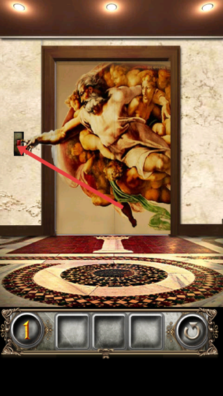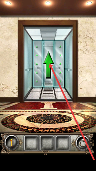 1、初始場景,按箭頭指引,點(diǎn)擊門側(cè)把手,查看場景里的物品及空間,嘗試開門,推進(jìn)關(guān)卡。