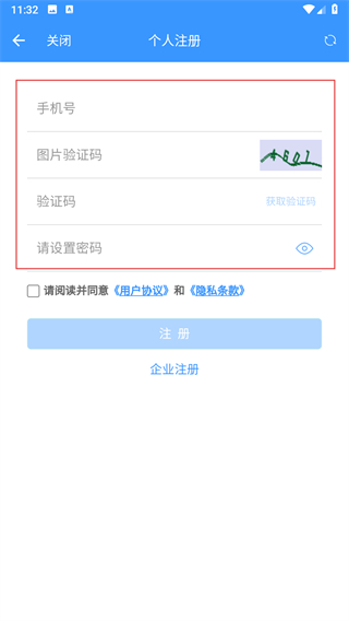 3、填寫手機(jī)號(hào)、圖片驗(yàn)證碼、驗(yàn)證碼,設(shè)置密碼。