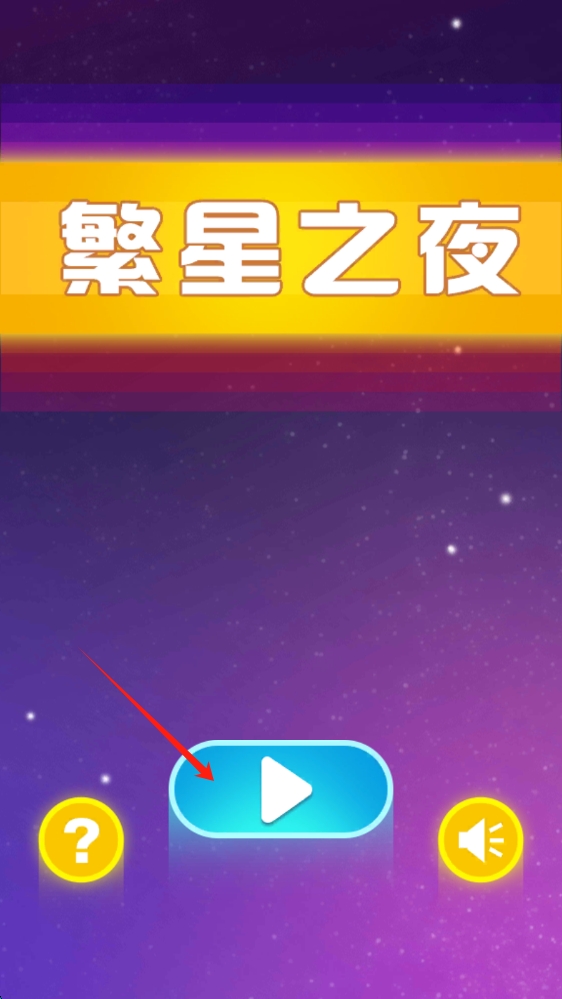 1、游戲啟動界面,標(biāo)題 “繁星之夜”,有開始、幫助(?)、音效按鈕,點(diǎn)擊開始游戲。