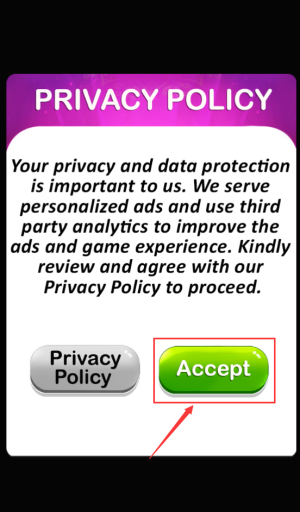 1、點擊綠色accept按鈕,同意隱私政策繼續(xù)游戲。