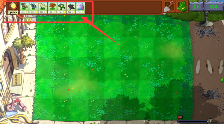 1、游戲開始后,觀察上方植物卡槽,選擇適合當(dāng)前戰(zhàn)局的植物類型。