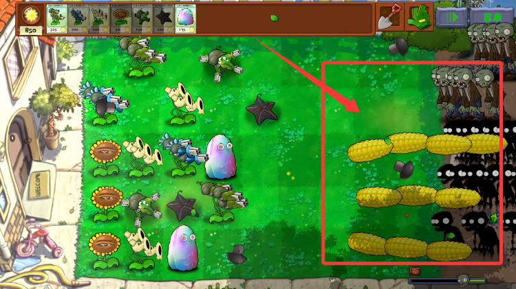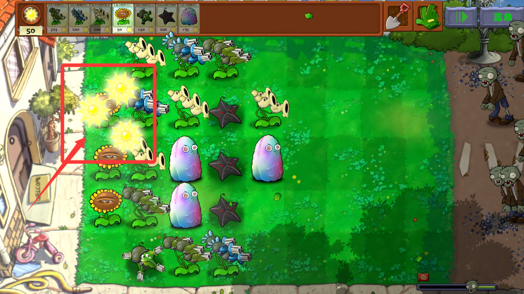 3、根據(jù)僵尸進(jìn)攻路線,及時(shí)補(bǔ)種攻擊型植物完善防御陣型。