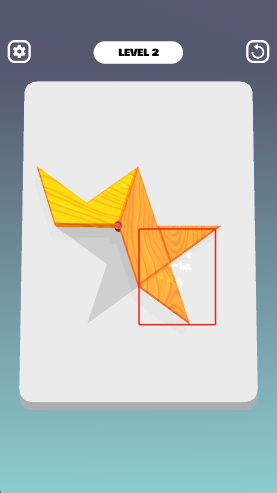2、進入游戲后拖動黃色木質部件,利用紅點旋轉軸,調整角度,讓部件邊緣契合星形缺口,逐步進行拼接。