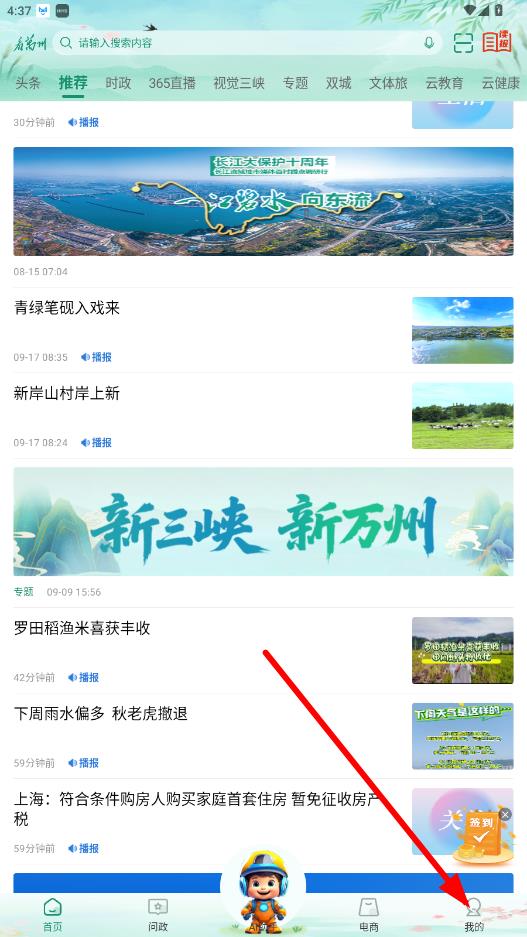 1、打開看萬州App,點擊底部導航欄中的我的進入個人頁面。