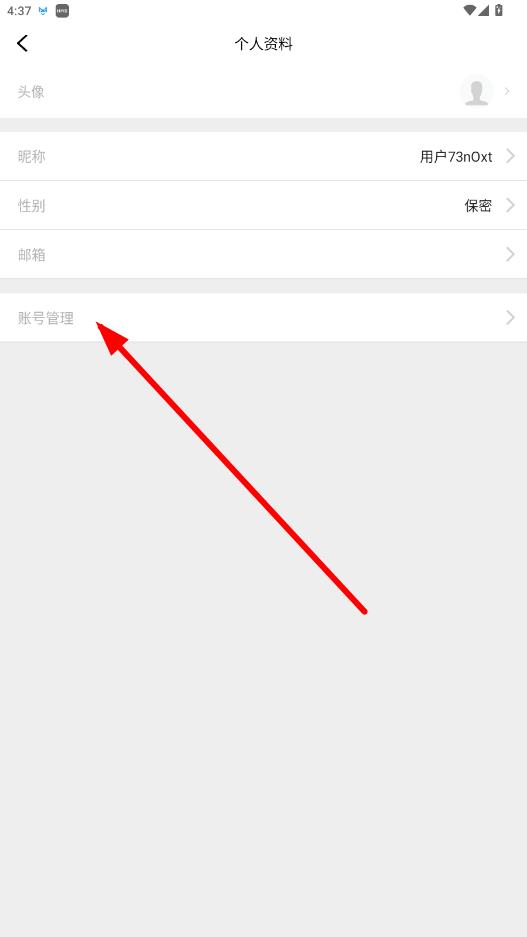 3、在個人資料頁面里,找到并點擊賬號管理選項。