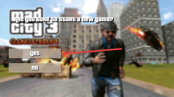 2、新游戲確認界面,通過點擊yes,確定開始新游戲,即可投身Mad-City-3的黑幫生活劇情。