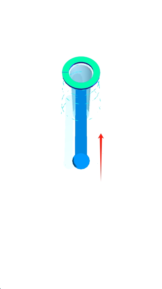 2、游戲關卡,需操控藍色小球大理石 通過管道迷宮,紅色箭頭指示移動方向,向上滑動移動。