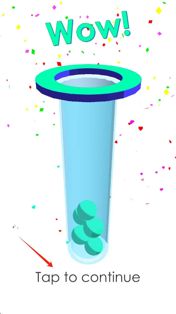 3、關卡結算,顯示W(wǎng)ow!哇哦,有Taptocontinue點擊繼續(xù) 按鈕,點擊繼續(xù)游戲。