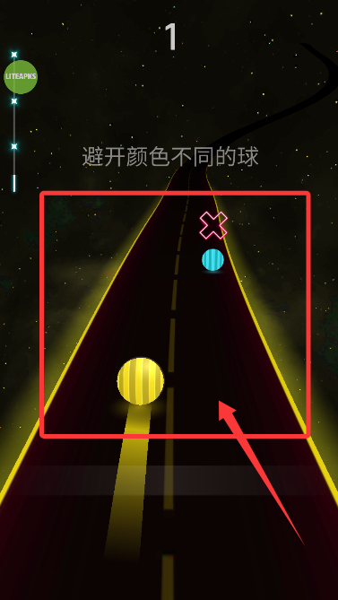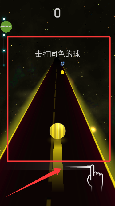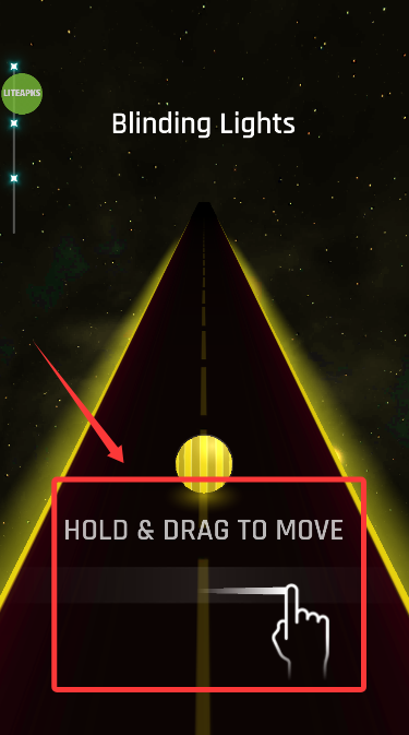 2、游戲過程中,手指長按屏幕并橫向滑動,操縱圓球在路徑上靈活位移。