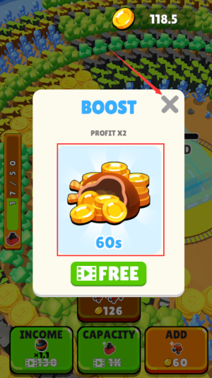 4、選擇free加速,獲得60秒雙倍收益加成。