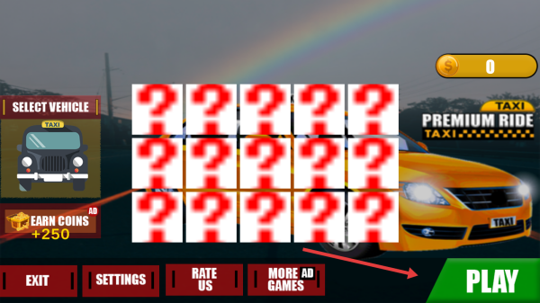 1、主界面點擊綠色PLAY,進入車輛選擇后,跳轉(zhuǎn)模式選擇,可選CLASSIC MODE或PRACTICE MODE開啟出租車駕駛。