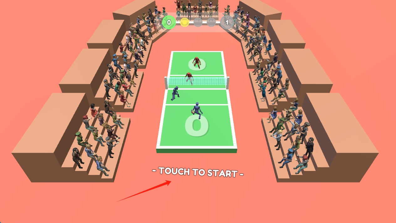 1、點(diǎn)擊TOUCH-TO-START,開啟排球比賽,進(jìn)入緊張刺激的對戰(zhàn)環(huán)節(jié),點(diǎn)擊開始游戲。