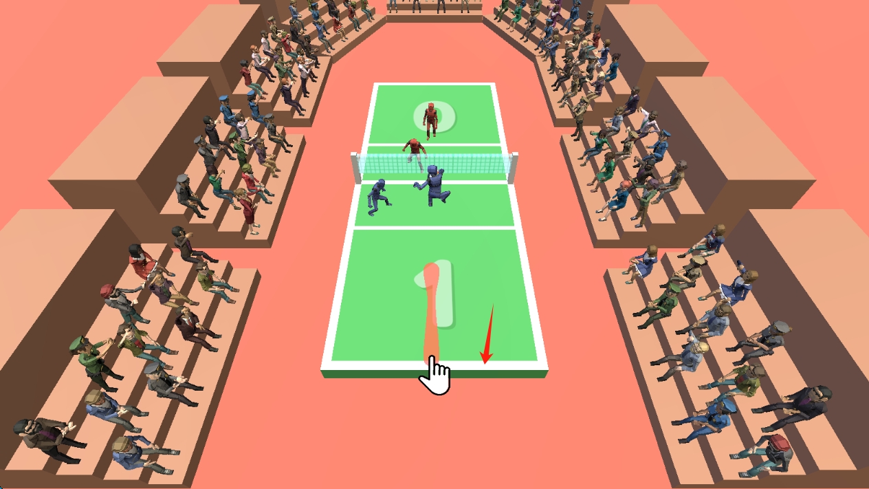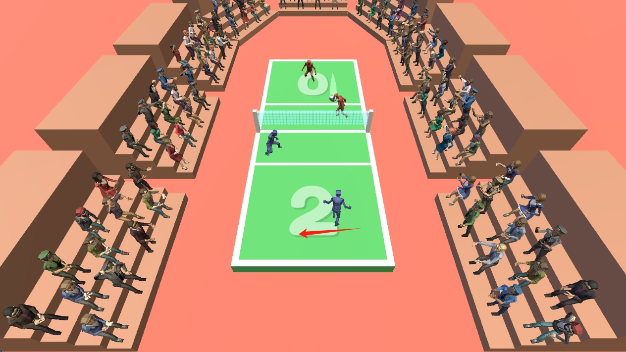 2、比賽時,根據(jù)球的落點(diǎn),點(diǎn)擊屏幕操控角色移動,精準(zhǔn)接球,保持比賽節(jié)奏,向下滑動扣球。