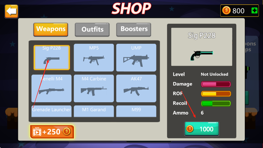 1、在游戲開(kāi)始前,選擇喜歡的火柴人造型,在商城里購(gòu)買趁手的武器,越貴的武器傷害值越高。