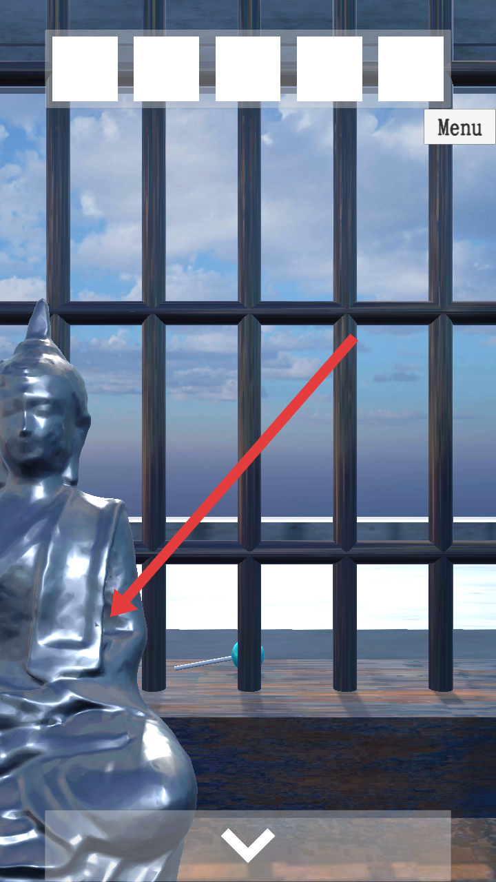2、點(diǎn)擊拖動鐵柵欄前的銀色佛像,會發(fā)現(xiàn)它的身后藏著隱藏的物品,為推進(jìn)后續(xù)的解謎流程。