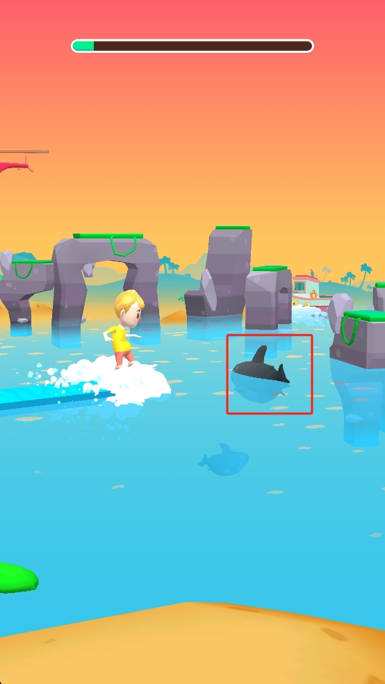1、操控沖浪平衡:通過左右滑動屏幕控制角色在沖浪板上保持平衡,避開海域中的礁石、浮標等障礙,利用海浪的推力加速前進,保持穩(wěn)定沖向關卡終點。