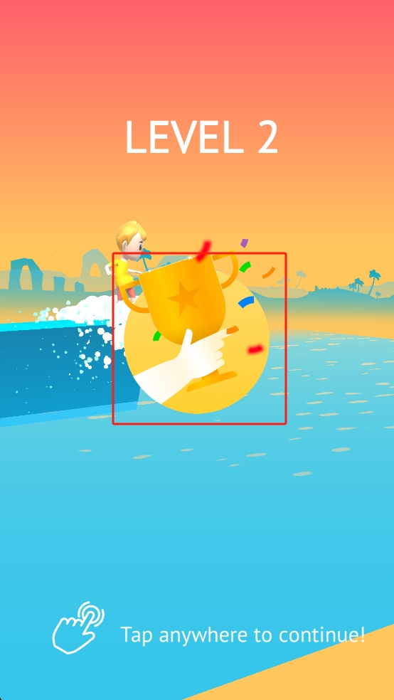 3、通關后,出現第二關解鎖界面,點擊屏幕任意處進入下一關,我們可以利用上一關的經驗,應對新關卡的挑戰(zhàn)。
