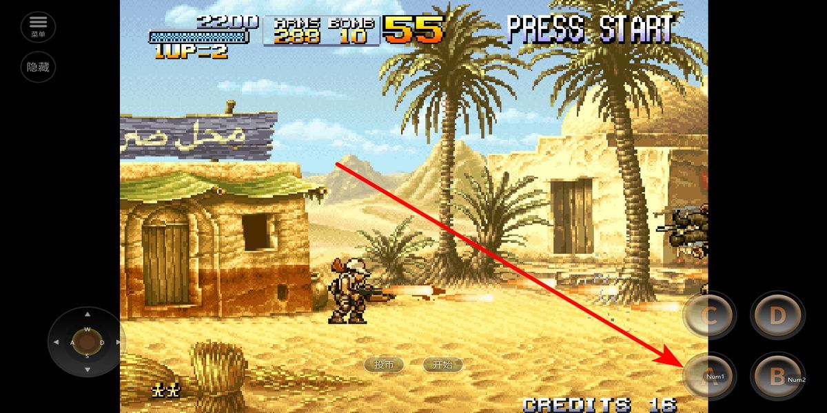 1、基礎(chǔ)操作:左側(cè)方向鍵控制角色移動(dòng),右側(cè)按鍵負(fù)責(zé)射擊跳躍與投擲手雷,拾取地面武器可切換裝備,被敵人包圍時(shí)善用跳躍與武器切換擺脫困境。