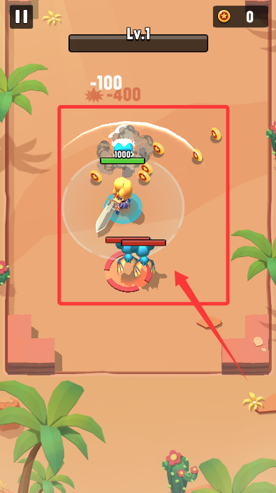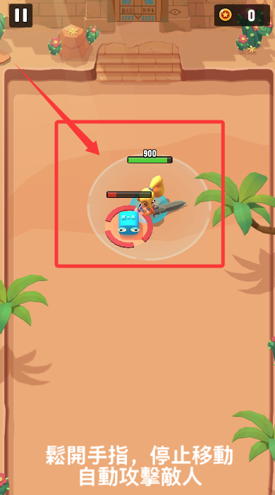 2、松開手指停止移動(dòng),角色自動(dòng)攻擊范圍內(nèi)出現(xiàn)的敵人,開展激烈戰(zhàn)斗。