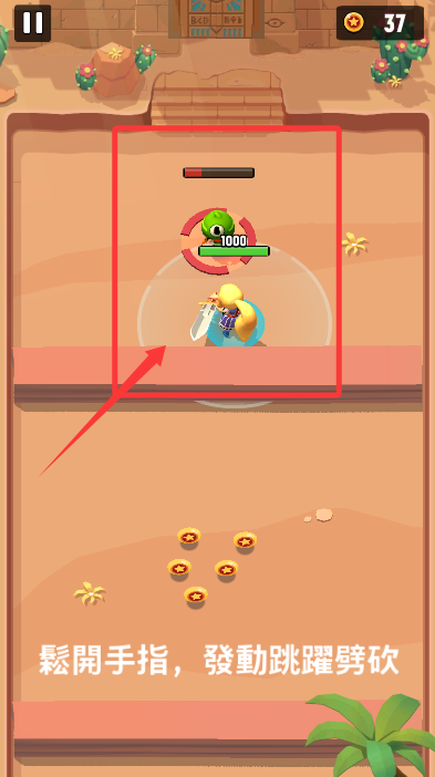 3、遇敵人時(shí)再次松開手指,觸發(fā)跳躍劈砍,可對(duì)敵人造成高額傷害。