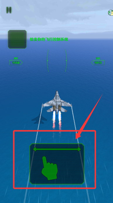2、飛行過程中通過觸屏滑動調(diào)整方向,實(shí)時控制戰(zhàn)機(jī)的俯沖、爬升等飛行動作。