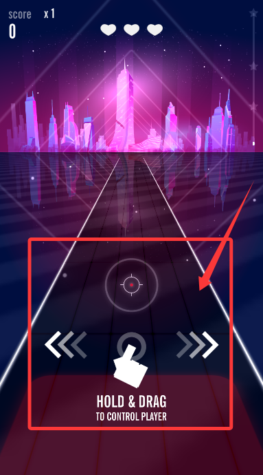 1、啟動(dòng)游戲后,通過(guò)滑動(dòng)屏幕底部的操作區(qū)域,即可操控角色在賽道上移動(dòng)。