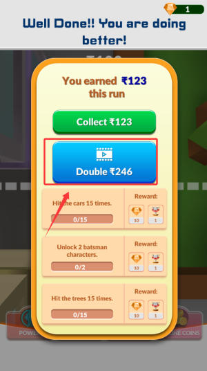 2、選擇觀看廣告視頻選項,完整播放后可獲得200到500枚金幣獎勵。