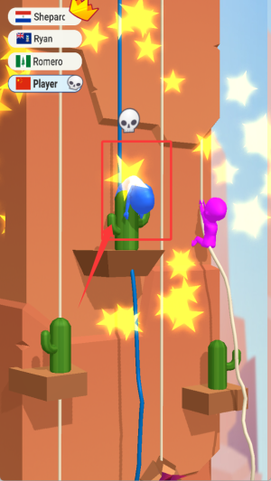 3、多人實(shí)時(shí)對(duì)戰(zhàn)系統(tǒng),支持2到8名玩家同場(chǎng)競(jìng)技,實(shí)時(shí)顯示對(duì)手攀爬進(jìn)度與位置,并設(shè)有道具互動(dòng)機(jī)制,在保持競(jìng)技公平性的同時(shí)增添策略趣味。