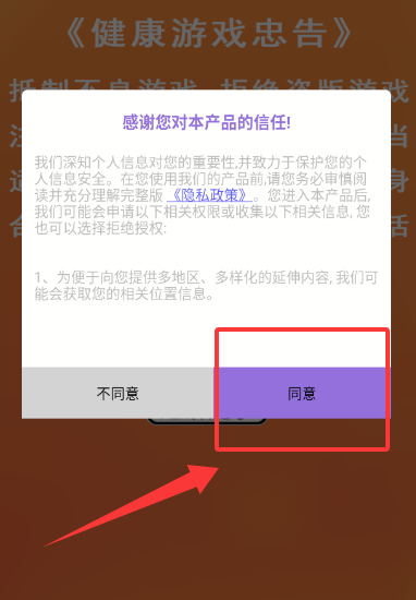 1,點(diǎn)擊框框里面的同意并進(jìn)入游戲。