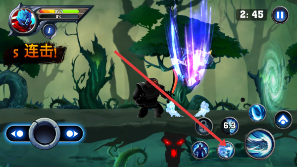 2、右手觀察技能冷卻,連招銜接用最基本的按鍵補(bǔ)刀,出現(xiàn)最高5連擊時(shí),釋放出傷害來(lái)攻擊對(duì)手。