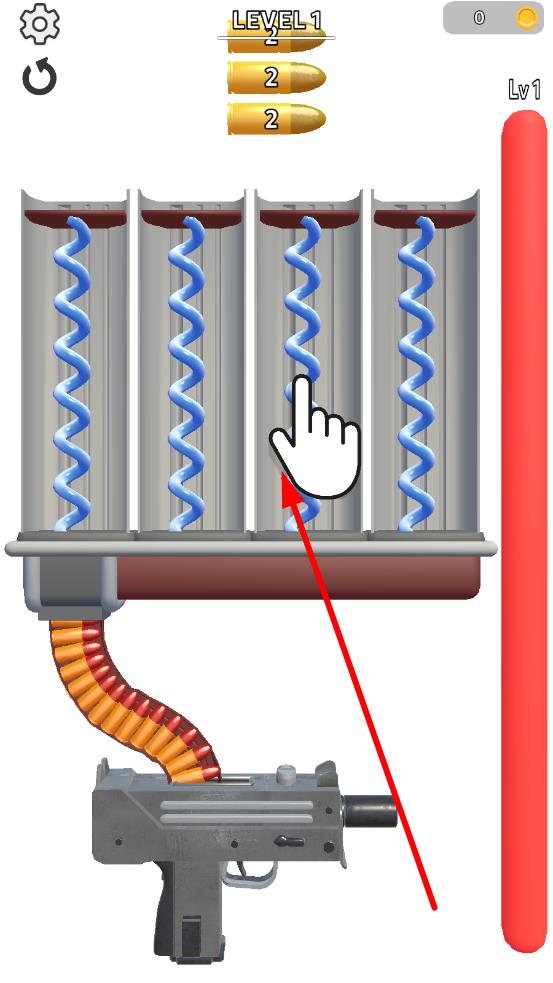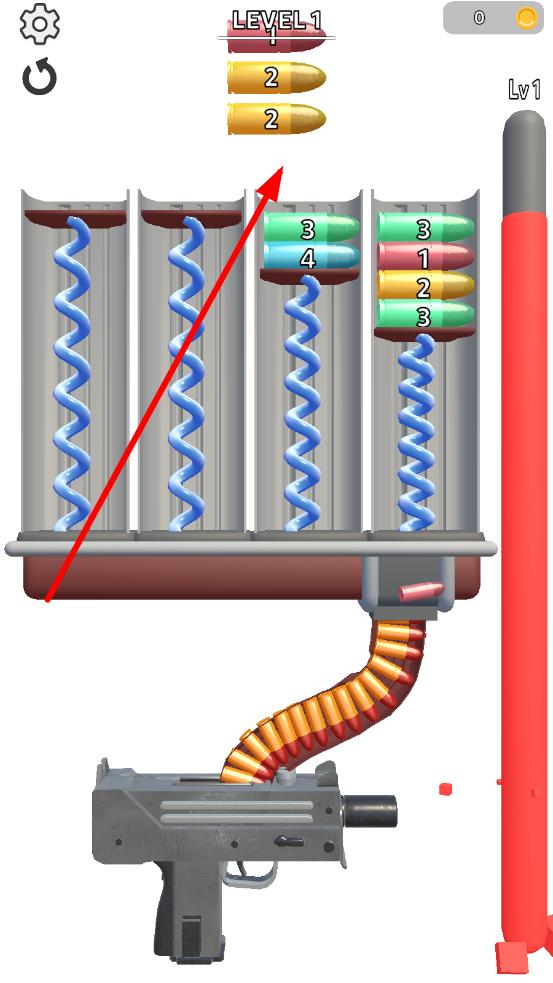 1、合成操作啟動:進入關卡,點擊武器槽位,觸發(fā)彈藥合成流程,上方彈藥依據(jù)操作有序落入槽內,正式開啟武器組件的打造之旅。
