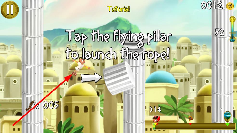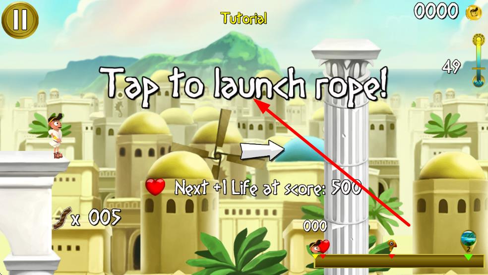 2、根據(jù)提示Tap to launchrope,點擊屏幕發(fā)射繩索,跨越障礙。