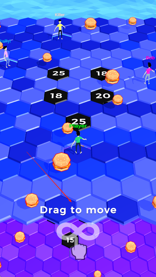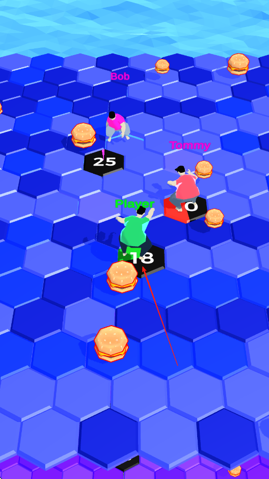 2、資源爭奪技巧:優(yōu)先收集賽道中央和密集區(qū)域的漢堡,這些位置資源豐富但競爭激烈,可通過突然變向干擾對手,為自己創(chuàng)造收集機會。