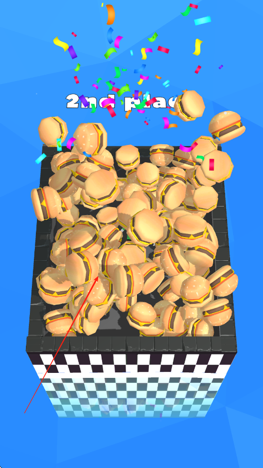 2、需持續(xù)收集賽道上的漢堡以維持移動狀態(tài),同時注意避開旋轉的障礙物和對手的碰撞,利用地形優(yōu)勢超越他人,保持在賽道前列。