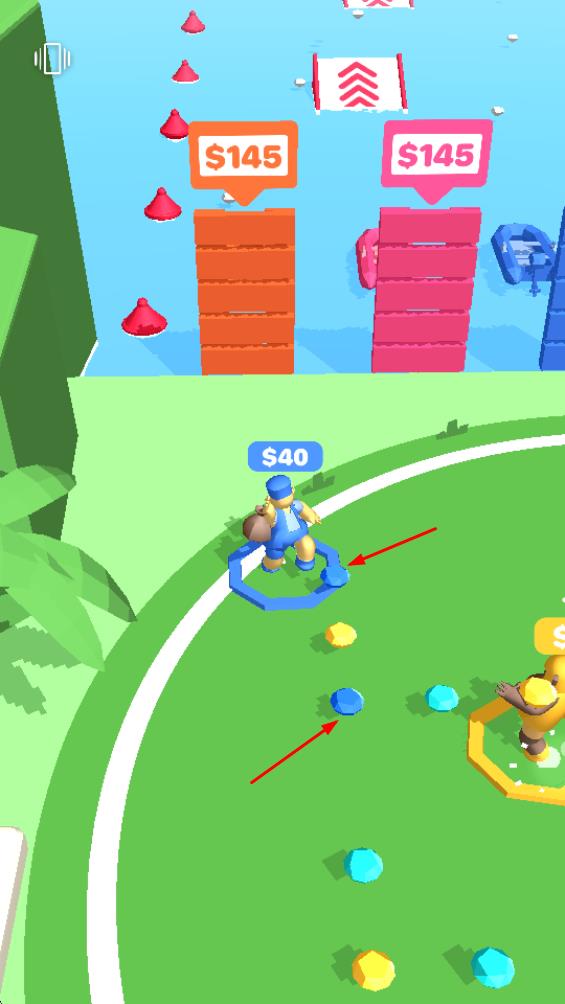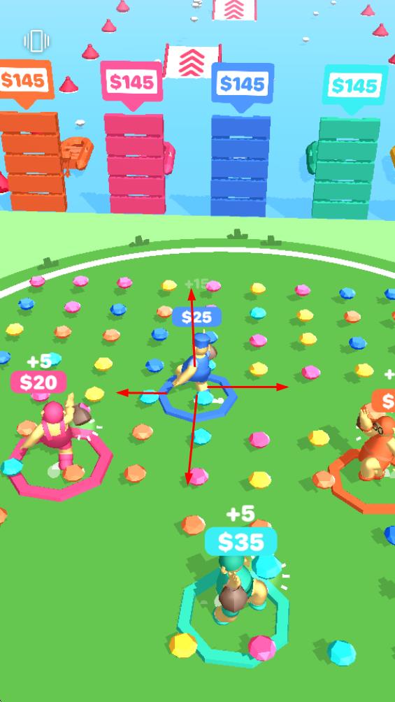 1、在草地場景操控彩色小人,通過移動收集金幣,積累財富。