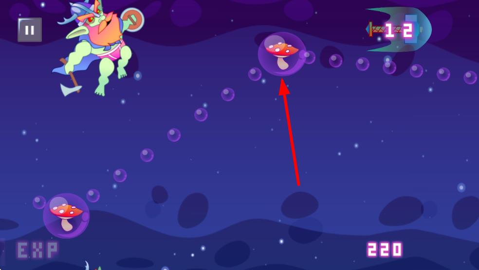 3、操控角色,射擊箭頭指向的蘑菇泡泡,收集道具,推進(jìn)關(guān)卡。