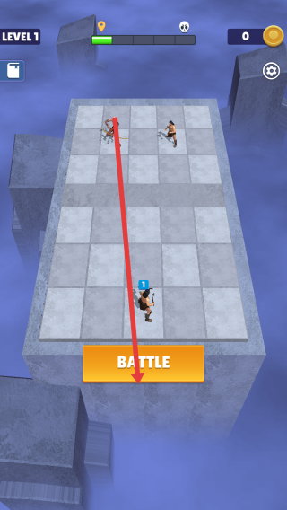 1、游戲開局頁面,點(diǎn)擊BATTLE前,觀察敵方位置,拖動(dòng)忍者到棋盤,點(diǎn)擊BATTLE按鍵,開始戰(zhàn)斗。