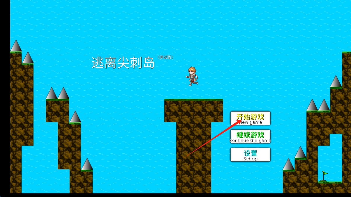 1、在逃離尖刺島啟動頁,點擊“開始游戲”,進入冒險關(guān)卡,點擊按鈕開始游戲。