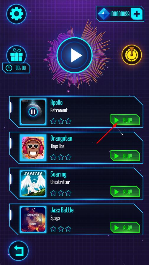 1、進(jìn)入游戲后,選擇喜歡的音樂(lè)曲目,等待前奏結(jié)束,根據(jù)屏幕出現(xiàn)的節(jié)奏提示開(kāi)始點(diǎn)擊操作,開(kāi)啟音樂(lè)之旅。