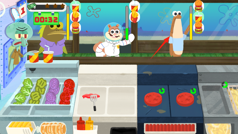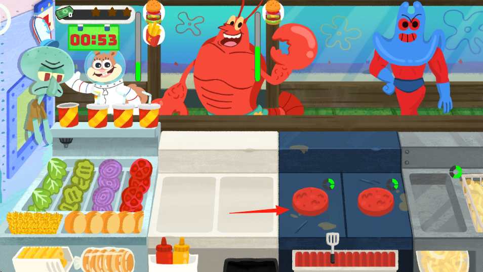 3、角色互動(dòng)彩蛋:與海綿寶寶等角色的互動(dòng)中藏有動(dòng)畫彩蛋,完成角色的特殊訂單還能獲得限定獎(jiǎng)勵(lì),增加游戲的探索樂(lè)趣和粉絲向吸引力。