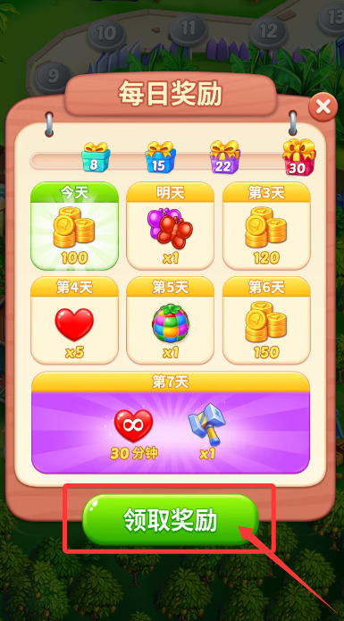 1、打開"每日福利"頁面,點擊確認按鈕領取當天登錄禮包。