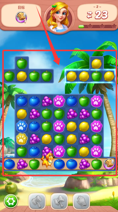 1、基礎消除模式,要求玩家在限定步數內完成目標分數或清除特定水果,需要合理規(guī)劃每一步的消除順序是成功的關鍵。