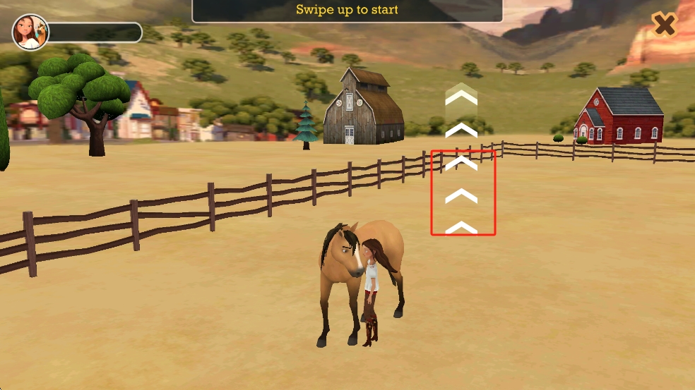 1、首先我們按提示向上滑動(dòng)屏幕,讓角色騎上馬匹,開(kāi)始游戲流程,借助場(chǎng)景引導(dǎo)開(kāi)啟互動(dòng)。