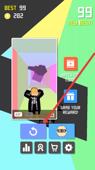 3、如果沒有躲避障礙游戲結(jié)束后,若想重新挑戰(zhàn),點(diǎn)擊藍(lán)色重新開始按鈕,再次在通道中展開冒險(xiǎn)。