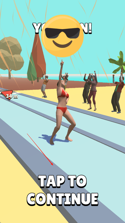 3、保持速度沖刺到終點(diǎn),率先越過終點(diǎn)線完成比賽,根據(jù)收集的衣物和道具獲得評分,解鎖新關(guān)卡和更具挑戰(zhàn)性的賽道。